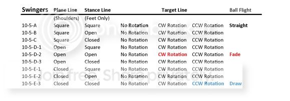 Per 10-12, I thought the Stance Line didnt effect the clubhead path but rather served to restrict the pivots motion in one direction. Closed restricting the downswing, Open restricting the Backswing. I know this is contrary to the common perception of things. But the Plane Line governs the clubhead path, no?